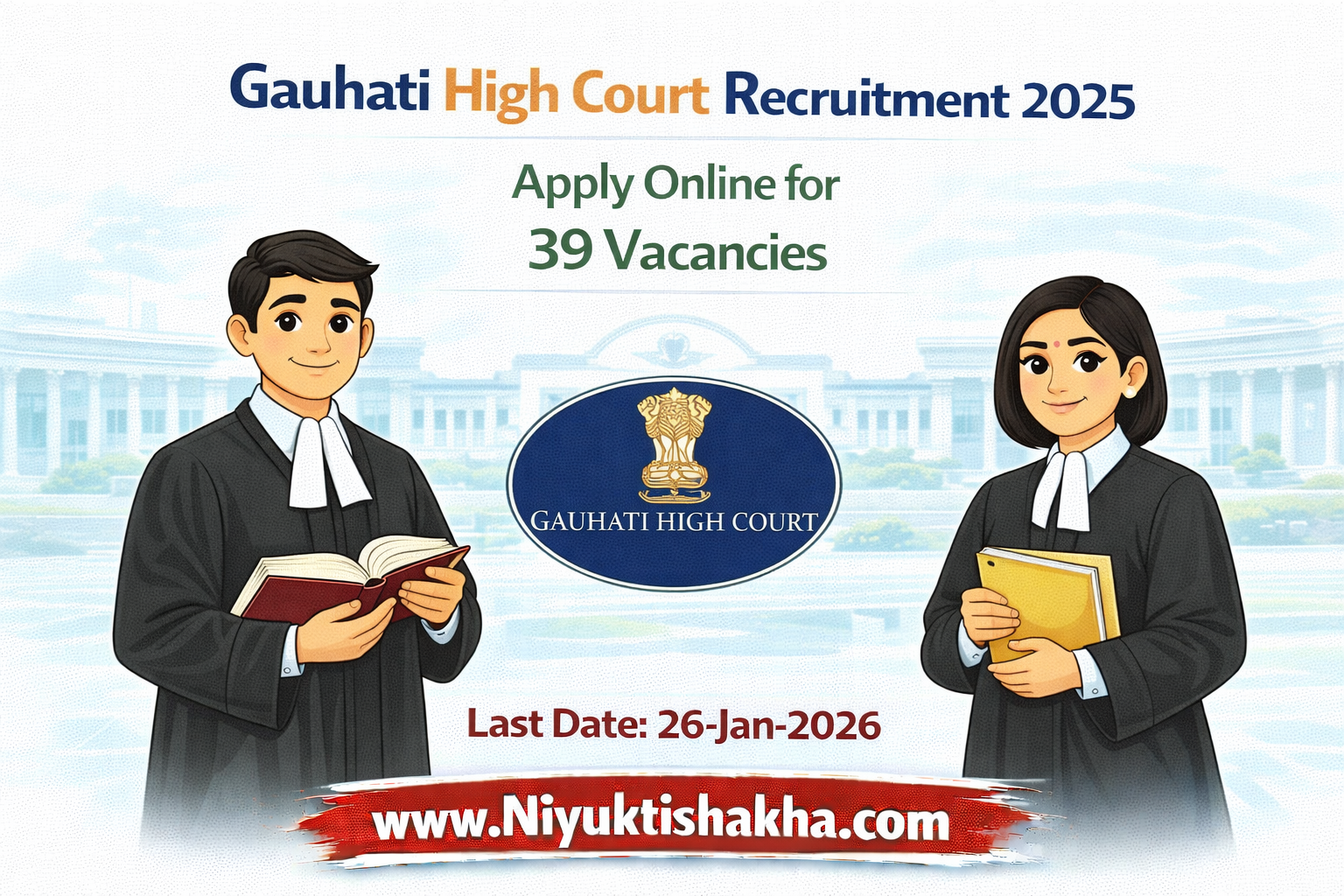 Short Information : The Gauhati High Court Recruitment 2025 notification has been released for 39 vacancies at its Principal Seat in Guwahati. The recruitment includes posts of Multi-Tasking Staff (MTS), Judicial Assistant, Computer Assistant, and Chauffeur (Driver). Eligible candidates who are citizens of India and registered with a valid Employment Exchange Number in Assam can apply online from January 9, 2026, to January 26, 2026, with the last date for fee payment being January 29, 2026.