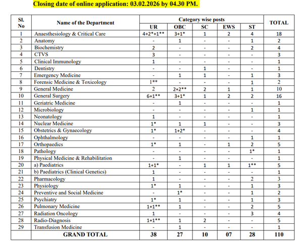 • Super-Specialty: DM / M.Ch. where applicable