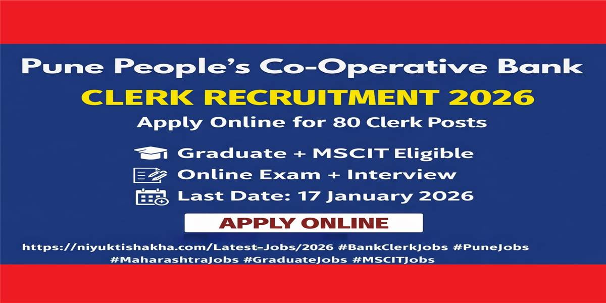 Tags : Pune People’s Co-Operative Bank Clerk Recruitment 2026 | Pune Cooperative Bank Clerk Vacancy | Bank Clerk Jobs in Pune | Clerk Jobs Maharashtra 2026 | Cooperative Bank Jobs 2026 | Pune Bank Recruitment | Graduate Bank Clerk Jobs | MSCIT Required Jobs | Banking Jobs in Maharashtra | Latest Bank Jobs 2026 | Sarkari Bank Jobs Pune | Private Bank Clerk Vacancy | Clerk Jobs Near Me | Bank Clerk Apply Online | Banking Career in Pune | Pune Clerk Recruitment Notification | Bank Jobs in Pune City | Clerk Jobs in Pimpri Chinchwad | Bank Clerk Jobs in Hinjewadi | Clerk Vacancy in Wakad | Banking Jobs in Baner | Clerk Jobs in Kothrud | Bank Jobs in Hadapsar | Clerk Recruitment in Shivajinagar | Bank Clerk Vacancy in PCMC | Banking Jobs Near Pune Railway Station | Pune District Bank Jobs | Maharashtra Cooperative Bank Jobs | Apply Online Bank Clerk Jobs | Latest Clerk Vacancy Today | Banking Jobs for Graduates | Clerk Jobs Without Experience | Immediate Bank Vacancy | Freshers Bank Jobs | Clerk Recruitment Notification PDF | Bank Exam Jobs 2026 | High Salary Clerk Jobs | Permanent Bank Jobs India