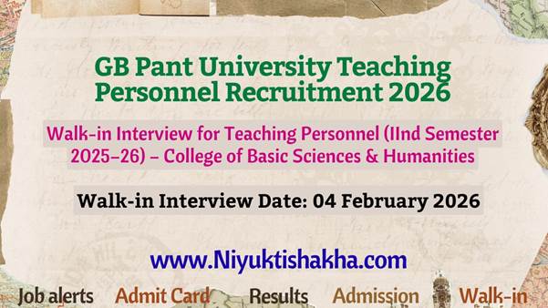 G.B. Pant University of Agriculture & Technology (GBPUAT), Pantnagar has released an official notification for Teaching Personnel Recruitment 2026. Applications are invited for engaging Teaching Personnel (Temporary / Contractual) in various disciplines of the College of Basic Sciences & Humanities for the IInd Semester of Academic Year 2025–26.