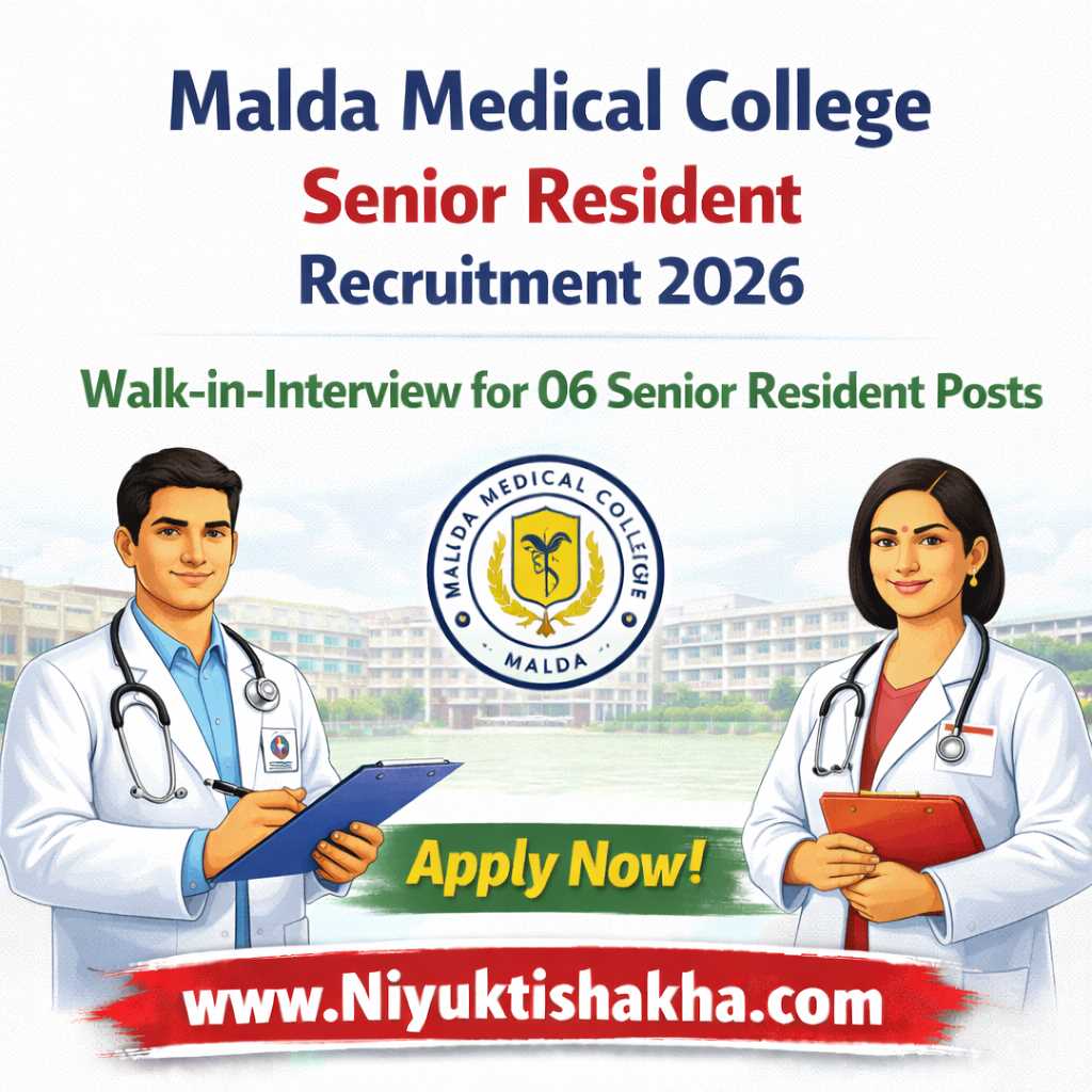 The Office of the Principal, Malda Medical College, Malda (West Bengal) has released an official notification for the appointment of Senior Residents (S.R.) on a temporary basis through Walk-in-Interview. Eligible medical candidates are invited to attend the interview as per the schedule given below.