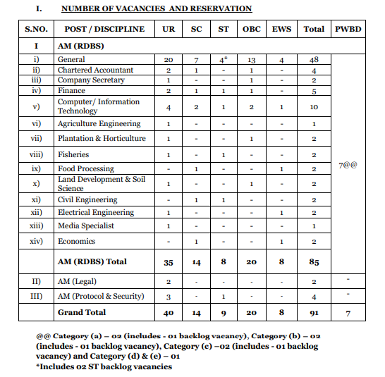 Total Vacancies: 91 posts (across RDBS / Legal / P&SS)