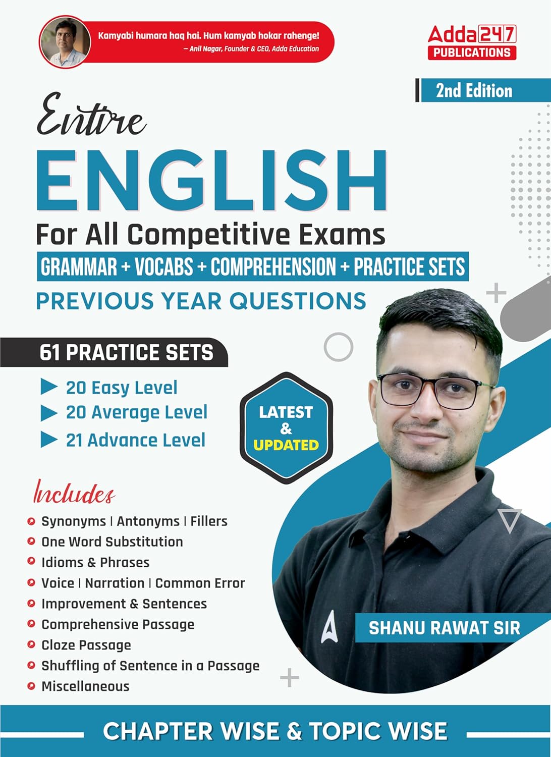 Entire English for All Competitive Exams |GRAMMAR|VOCABS|COMPREHENSION| 61 PRACTICE SETS (Printed Edition) By Adda247 Shanu Rawat Sir